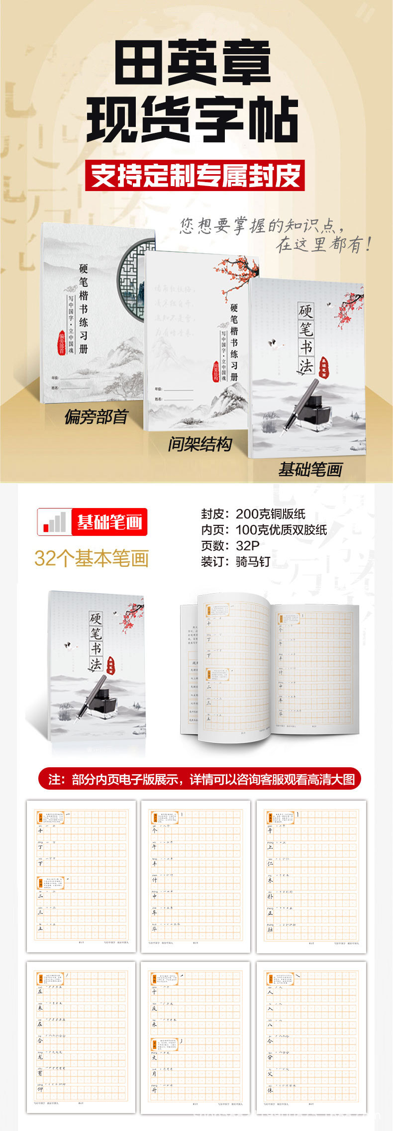 田英章硬笔楷体字帖楷书基础笔画偏旁部首间架结构支持古诗词临摹